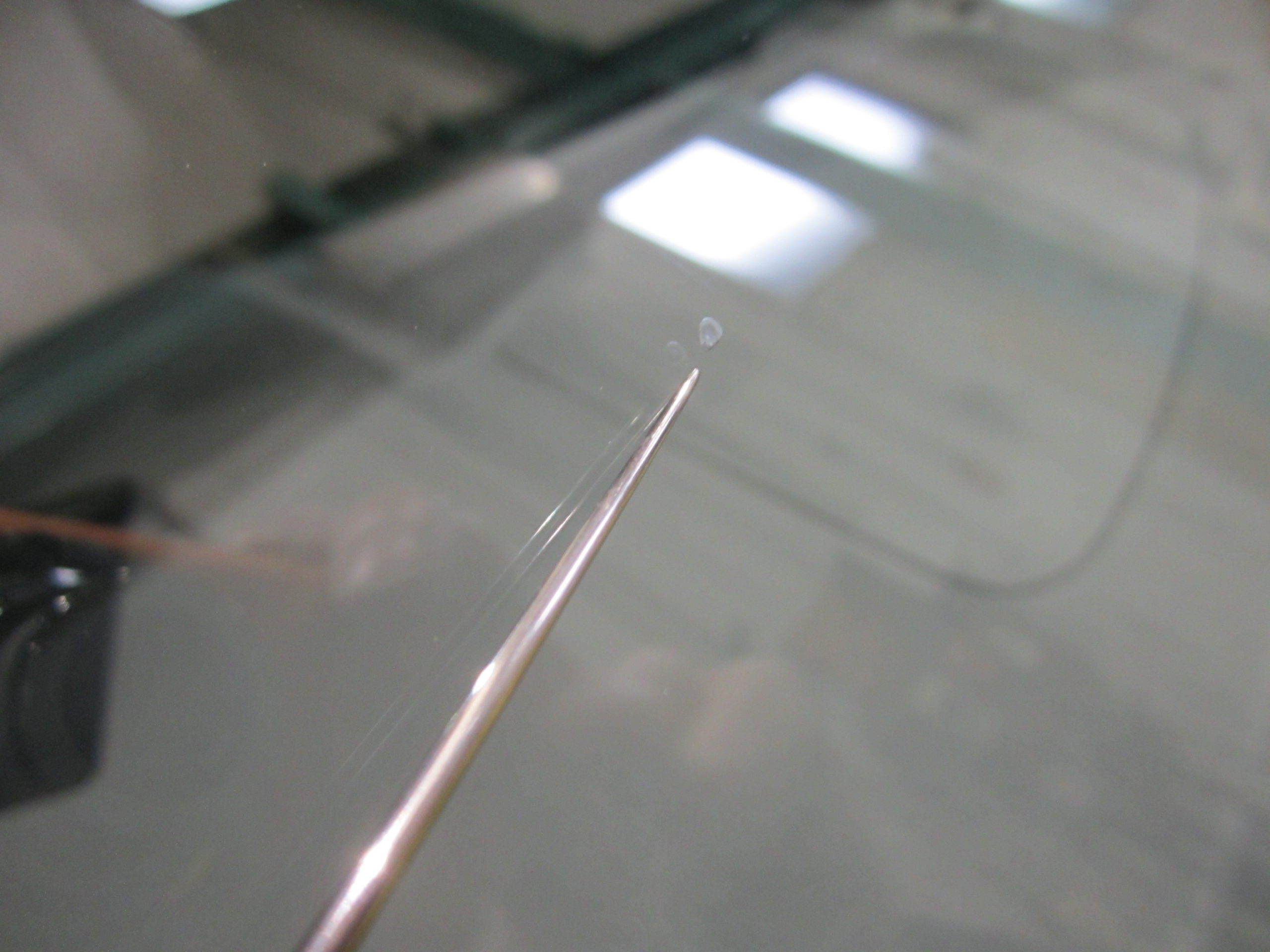 飛び石でひび割れてしまった為、修理を行いました。