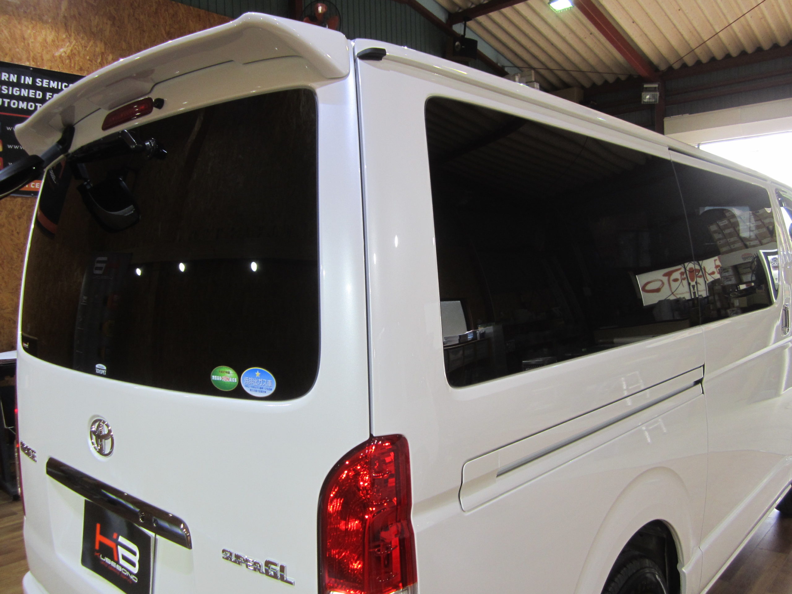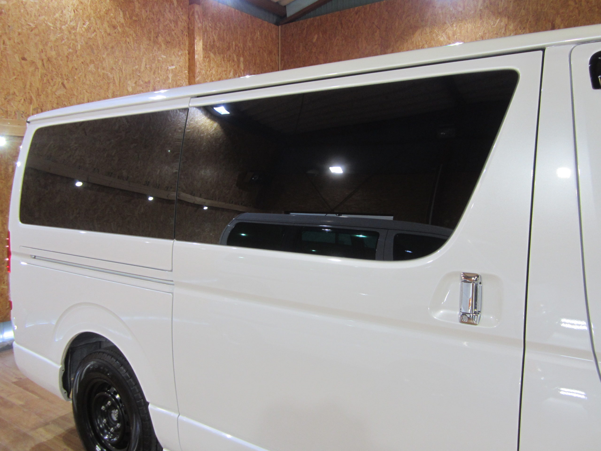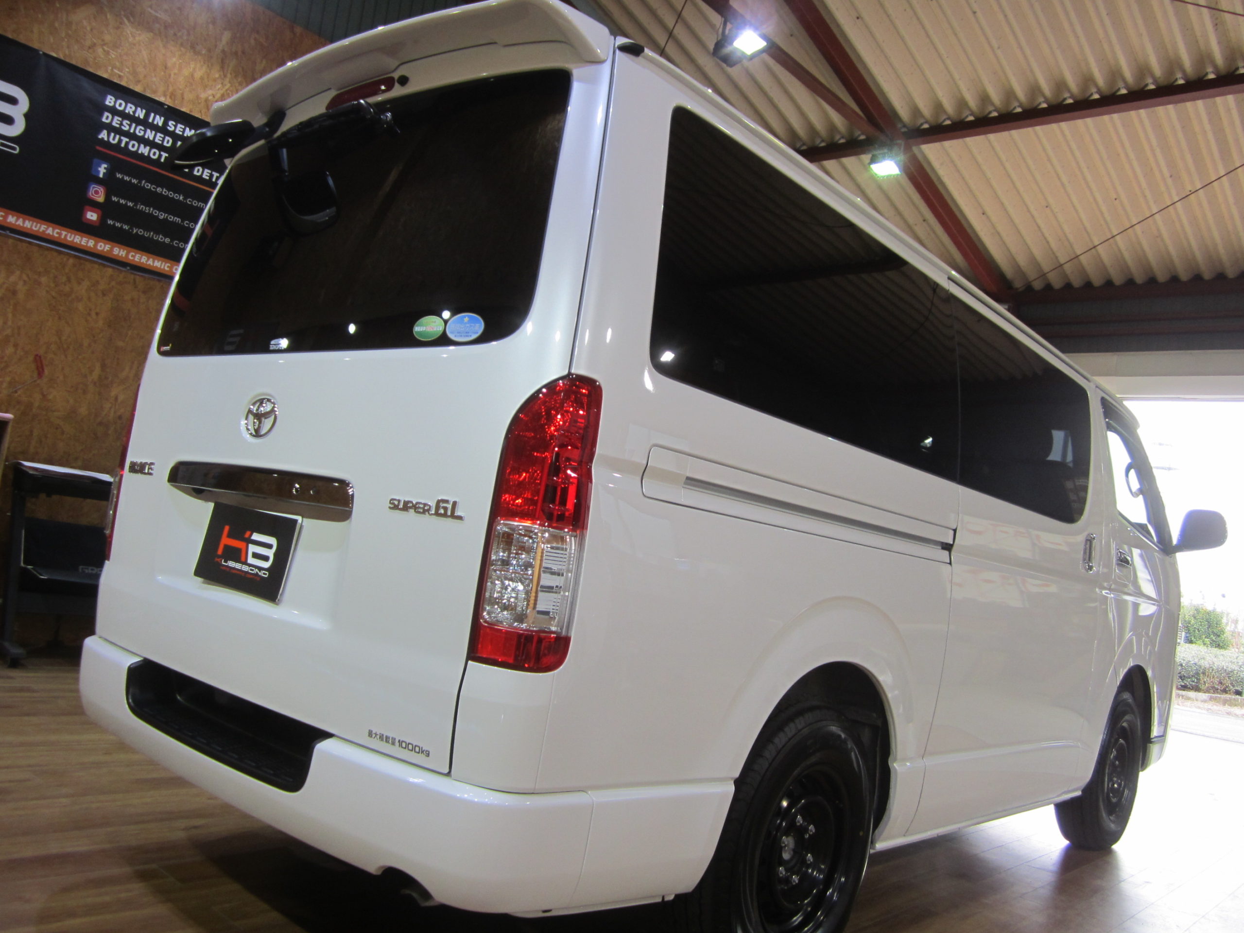 ハイエースにガラスコーティングで施工致しました。