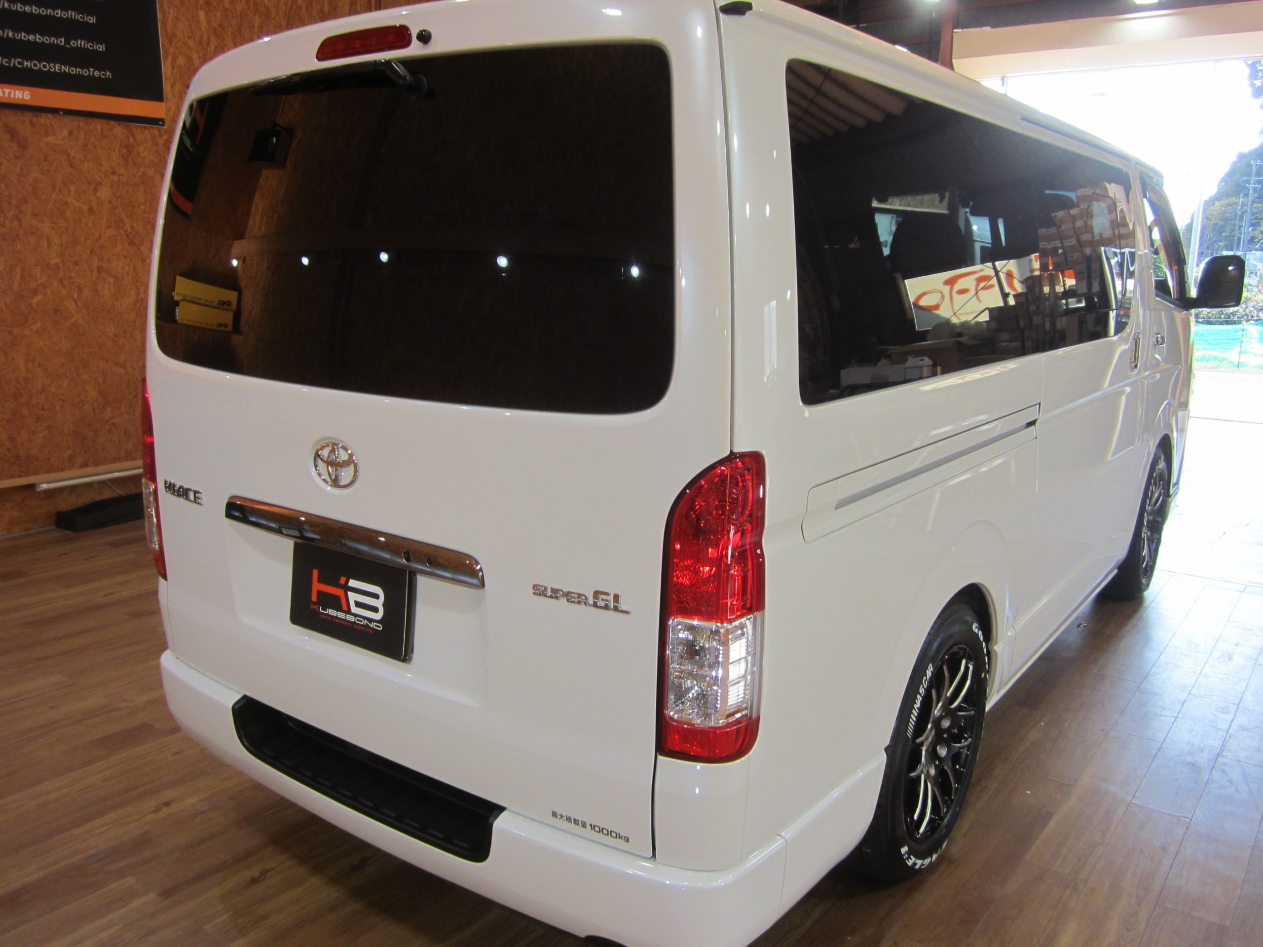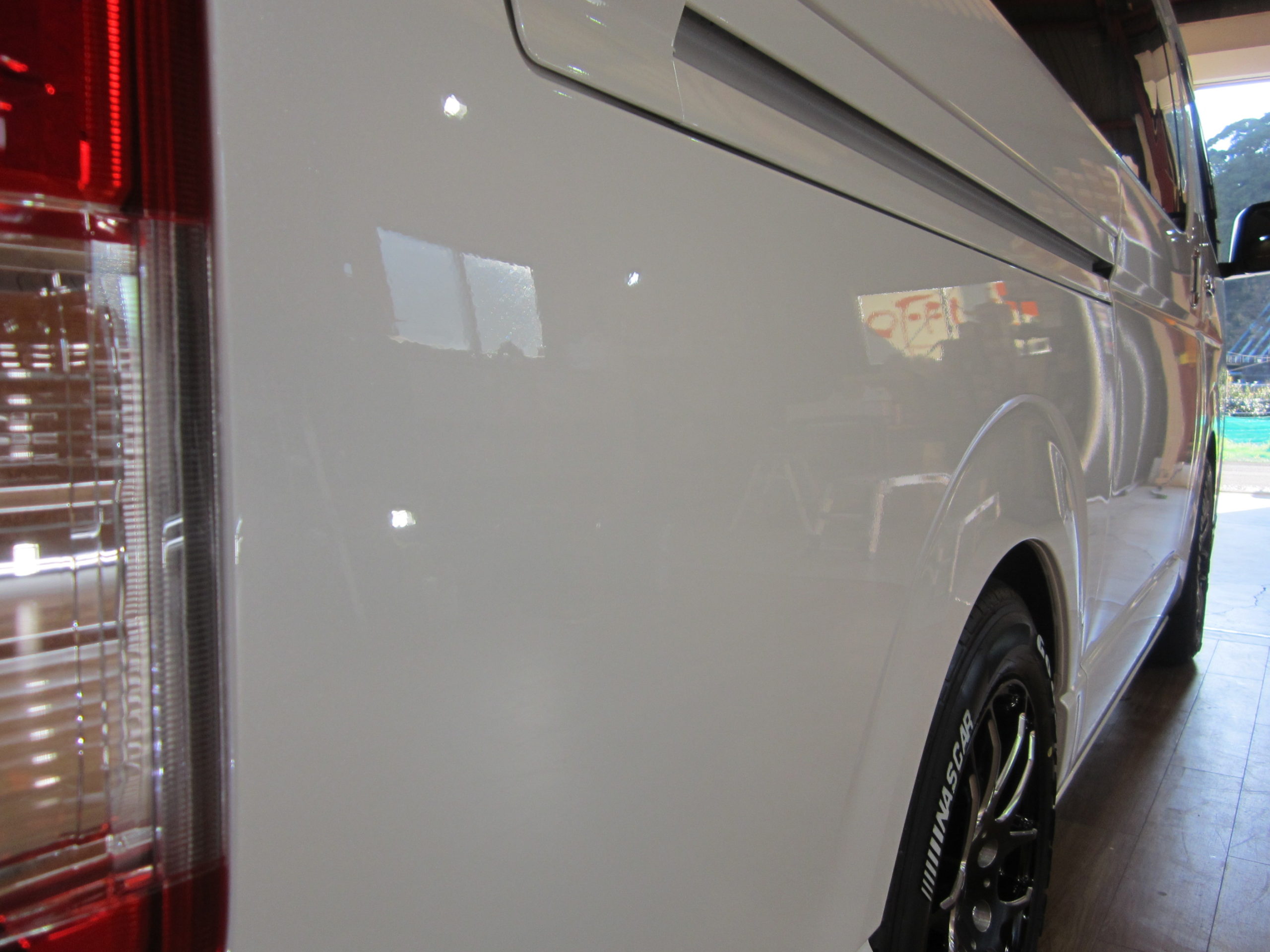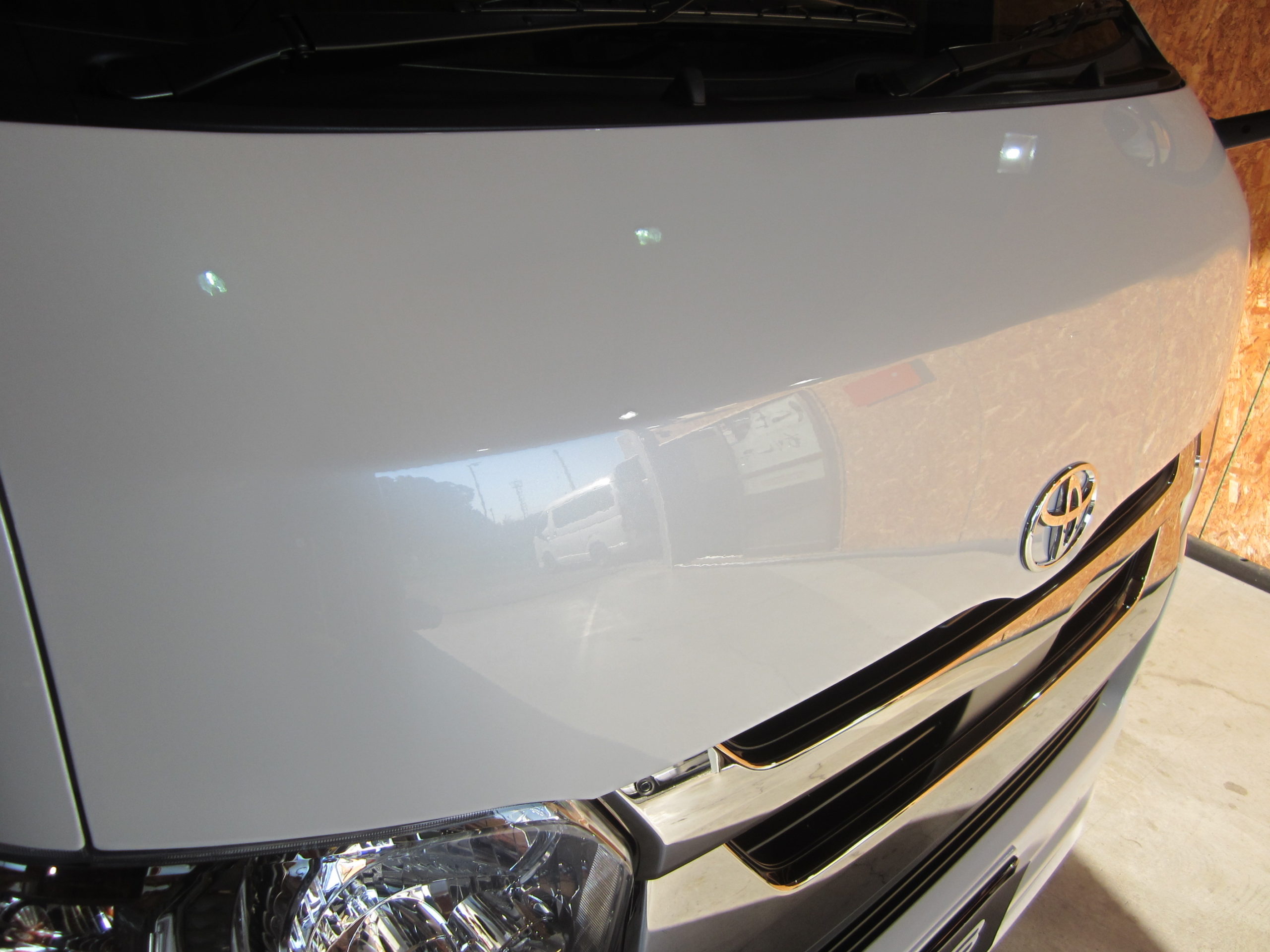トヨタ ハイエースにガラスコーティングで施工です。