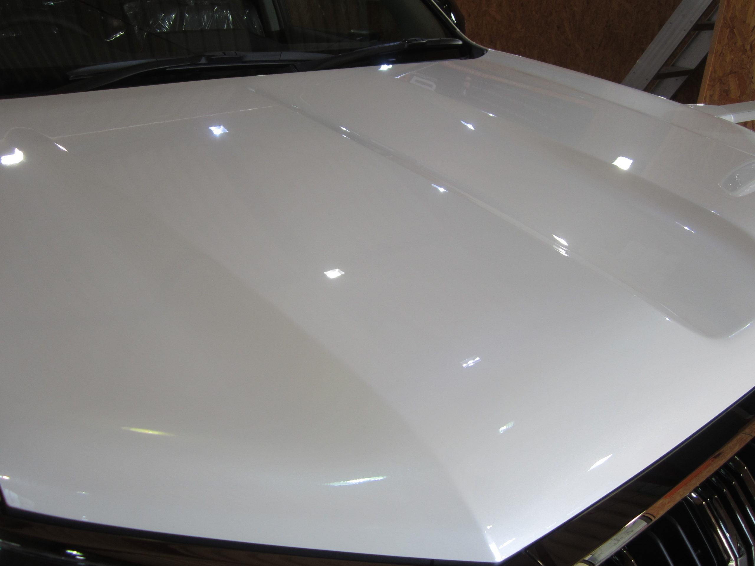 ボンネットも幅広いので脚立を使いコツコツと