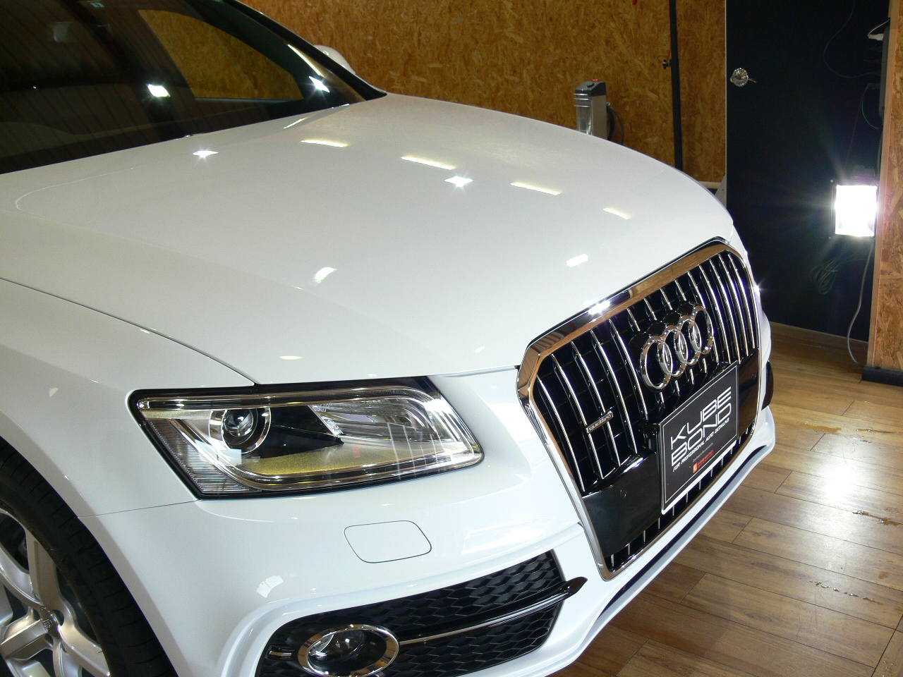 AUDI Q5にKUBEBONDダイヤモンド9Hコーティングを施工。目の覚めるような冴えるホワイトボディに仕上がりました。