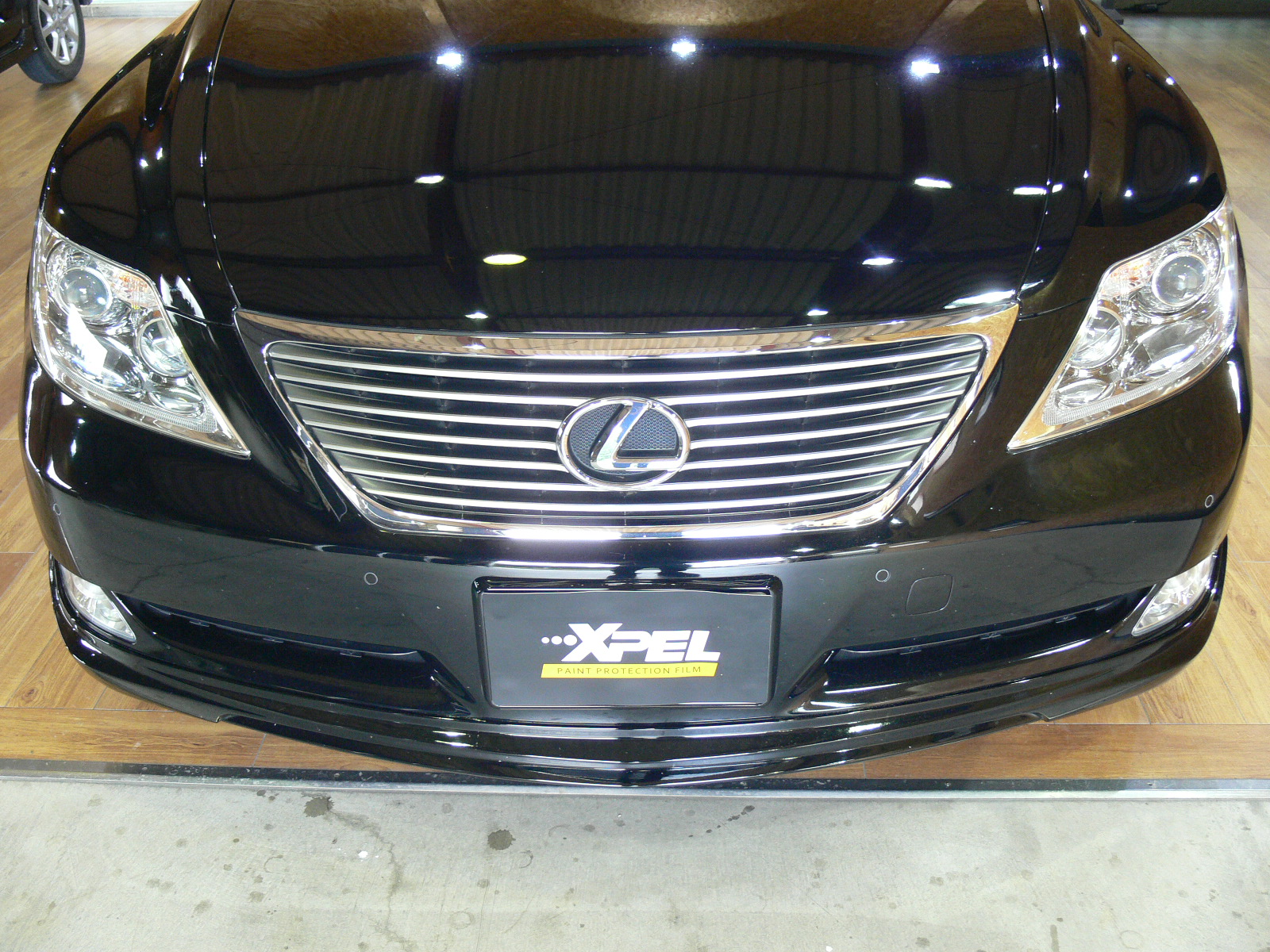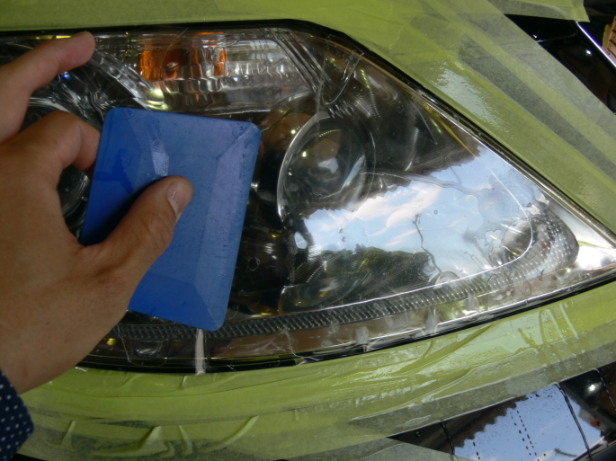 レクサスLSのヘッドライトにプロテクションフィルムをインストール。