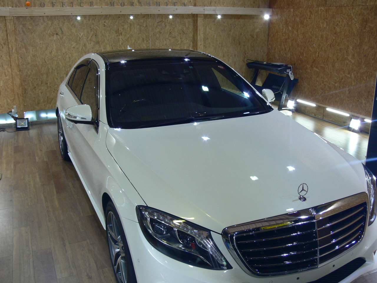 メルセデスベンツSクラスセダンにダイヤモンド9Hをコーティング。5層コートで強力にボディを保護します。 重ねてコーティングすることによって、より深い艶が創出されます。
