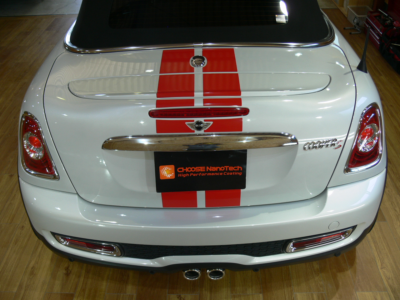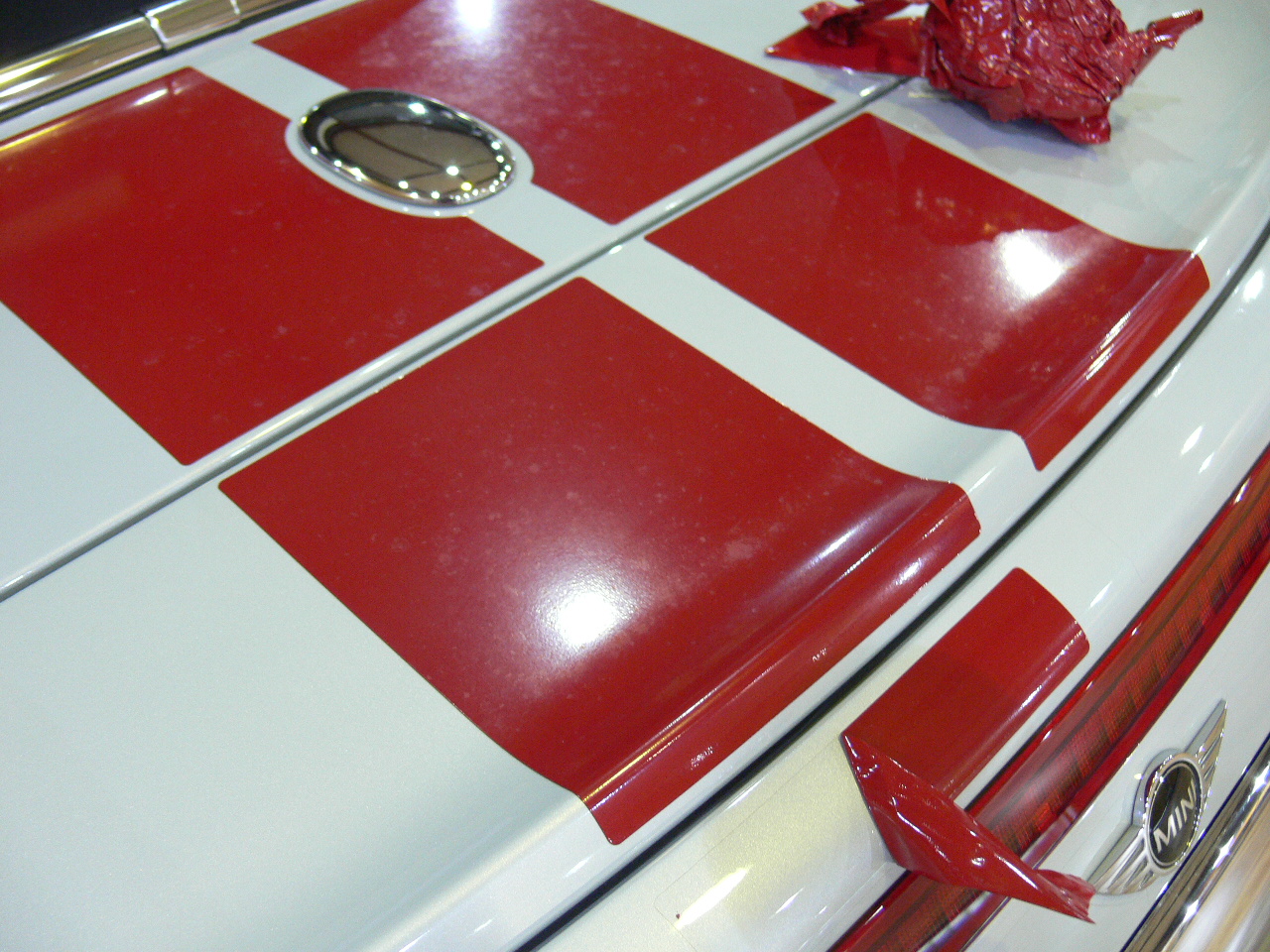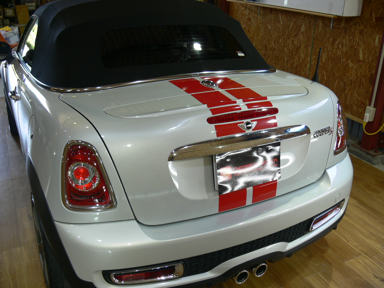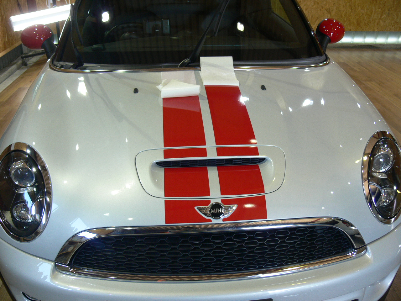 MINIのボディストライプが汚れてきたので新しいものに取り替えさせていただきました。