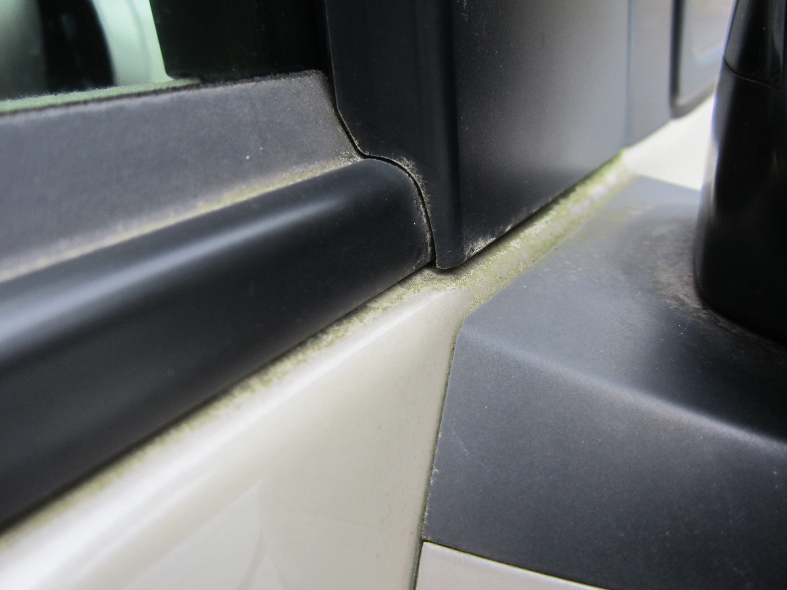 まずは、洗車で隅々に付いた苔などを落として磨き作業に移ります。